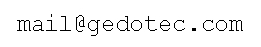 Although GEDO-TEC has attempted to provide accurate information on this Web site, information on this Web site may contain technical inaccuracies or typographical errors. The contents of any documents on this Web site are believed to be current and accurate as of their publication dates. GEDO-TEC assumes no responsibility for the accuracy of the information. GEDO-TEC may change the products mentioned at any time without notice. For the most current and complete documents, please contact GEDO-TEC directly. Mention of non-GEDO-TEC products or services is for information purposes only and constitutes neither an endorsement nor a recommendation.